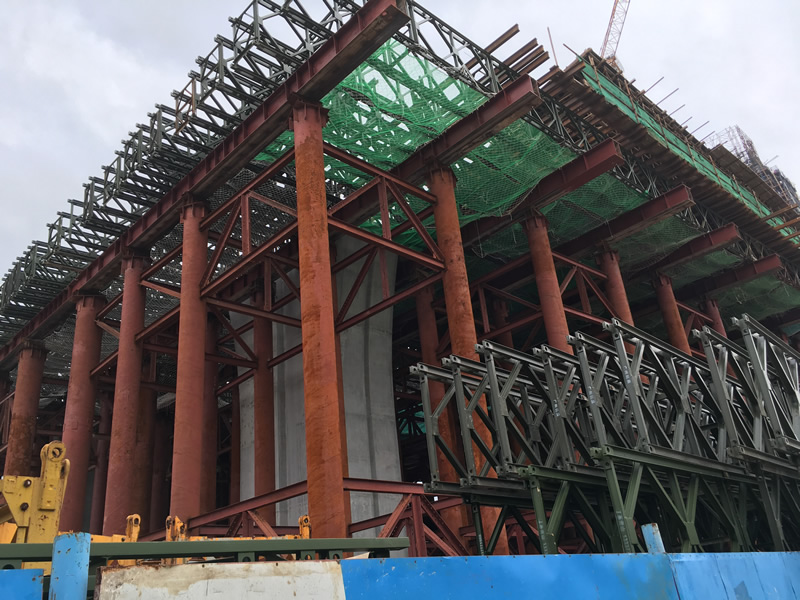 中國建筑交通局佛山南海新公交3標貝雷片現澆梁支架,用鋼量6000多噸